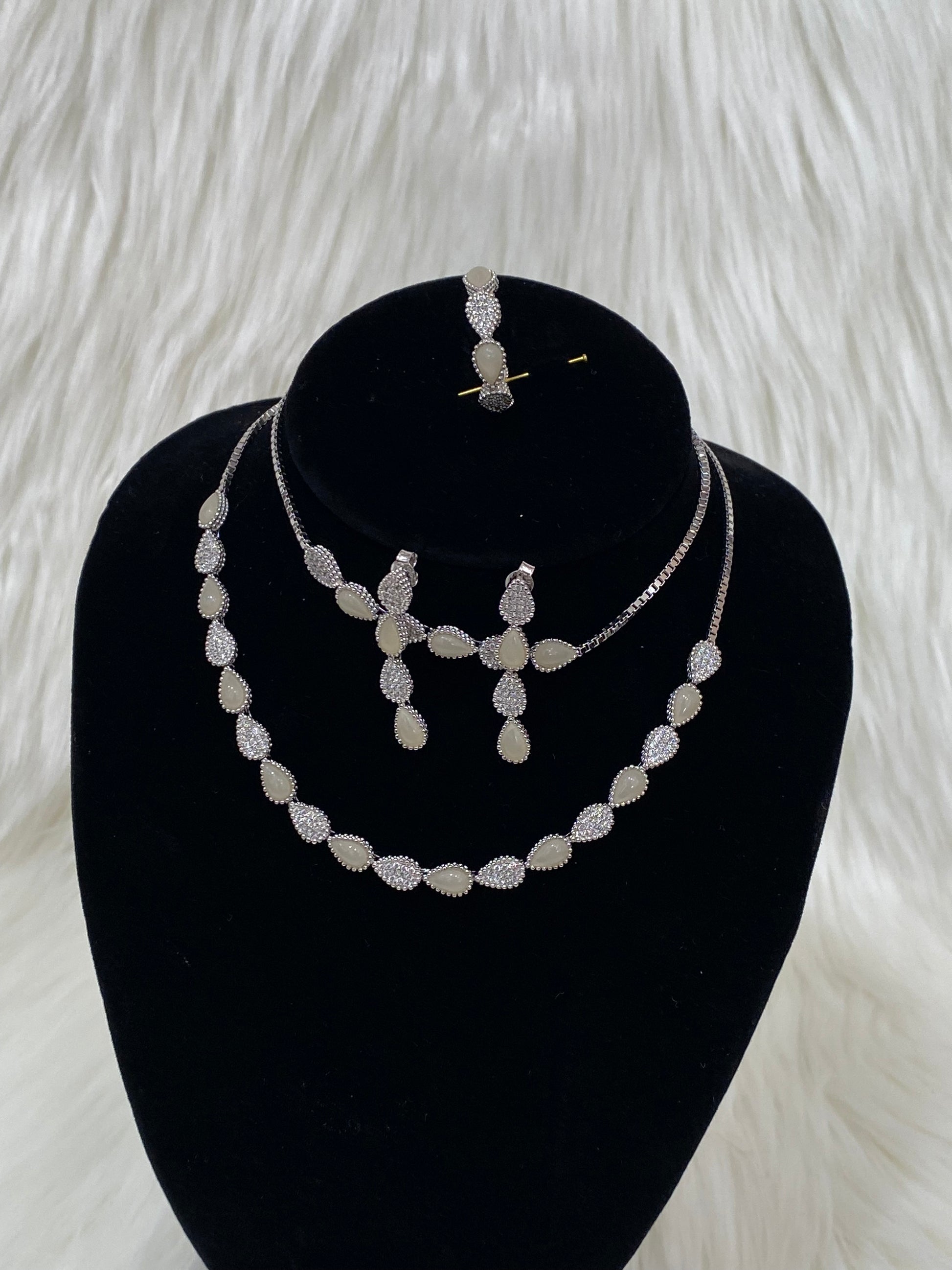 925 Sterling Silver 4 Piece Set ( necklace, Bracelet, Earrings Studs and Ring) with Cubic zirconia Stones.