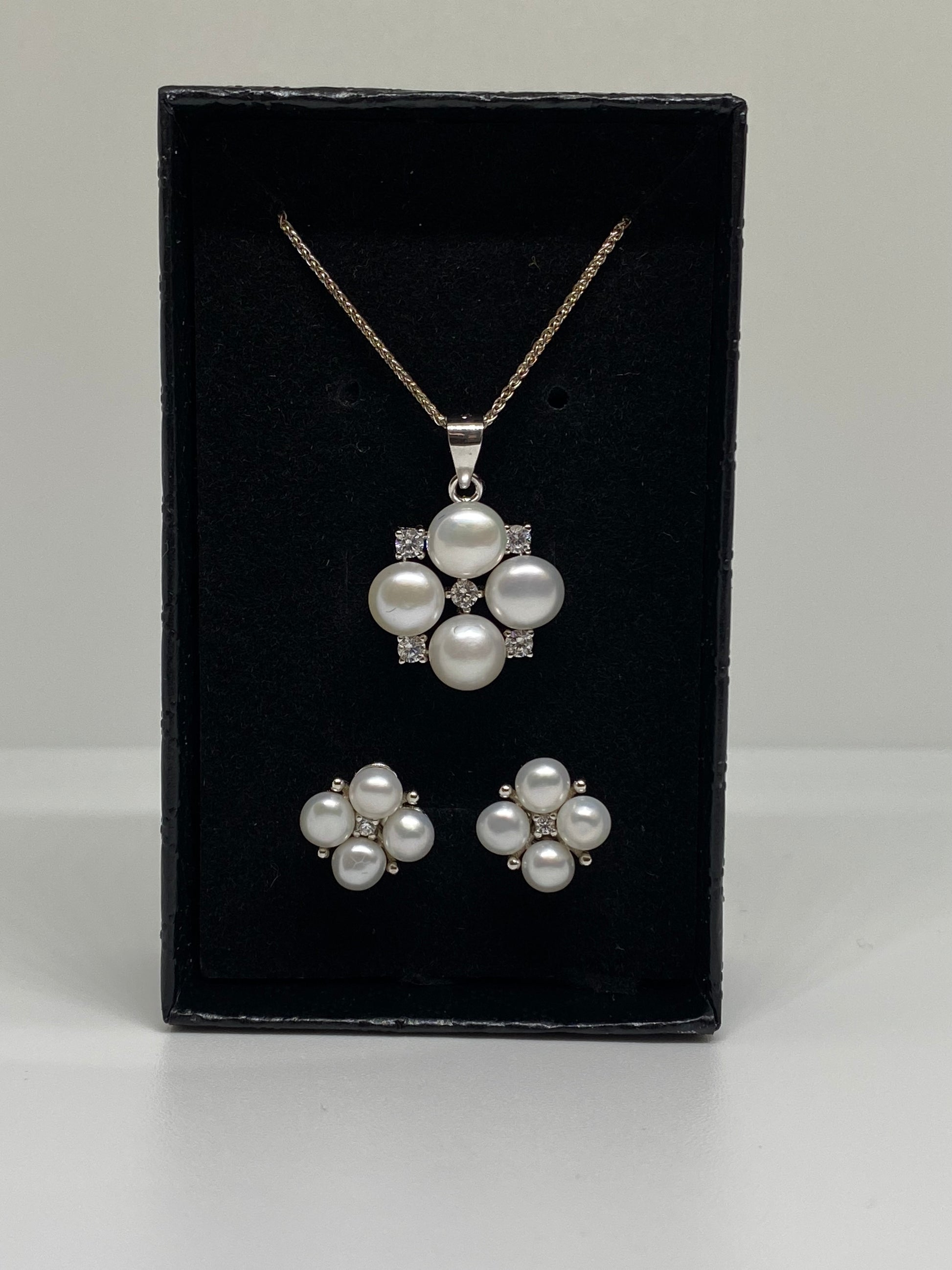 Fresh Water Pearls with Cubic zirconia Stones and Earring Studs.