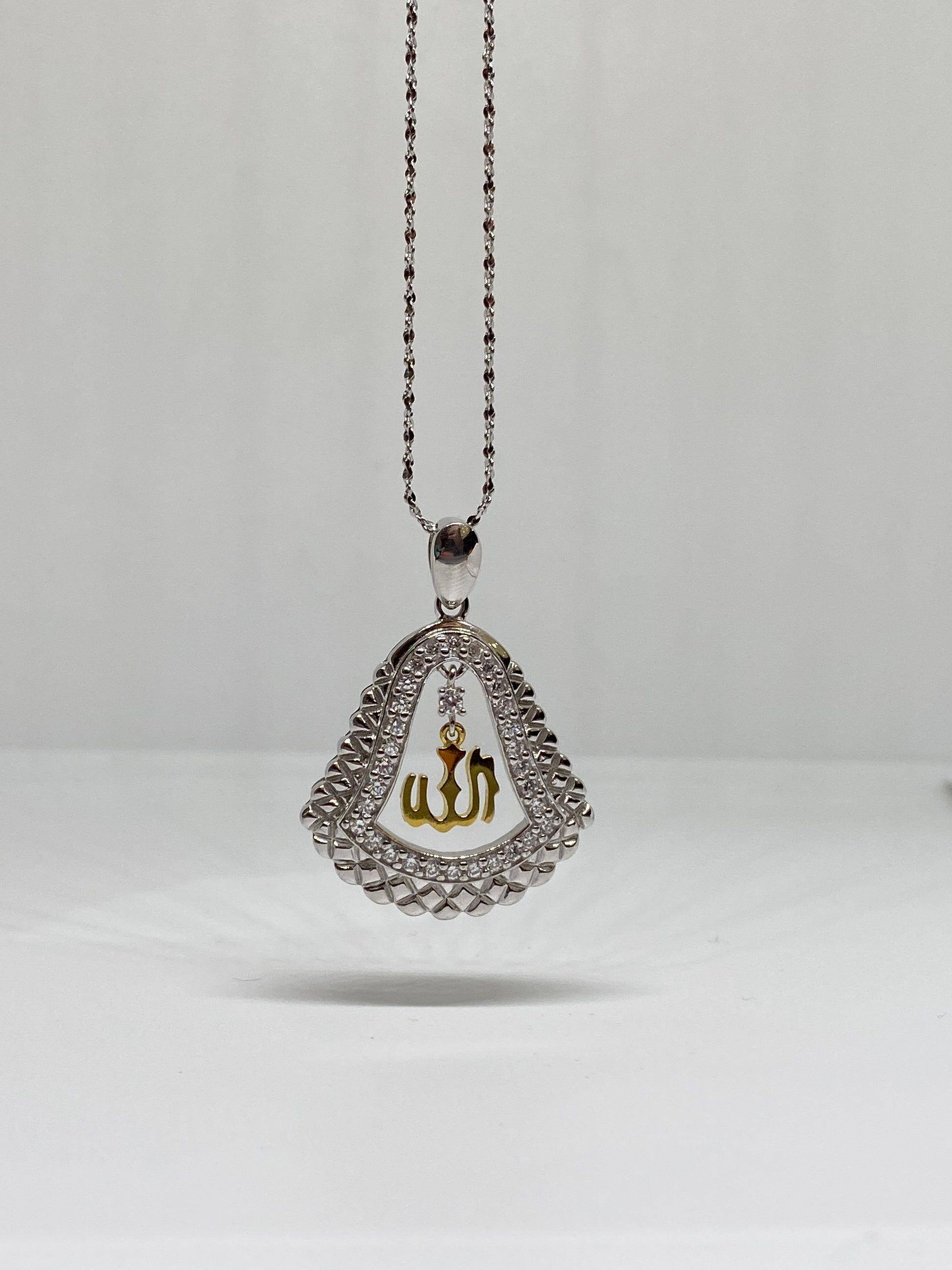 Sterling Silver Allah Pendant with Cubic Zirconia Stones.