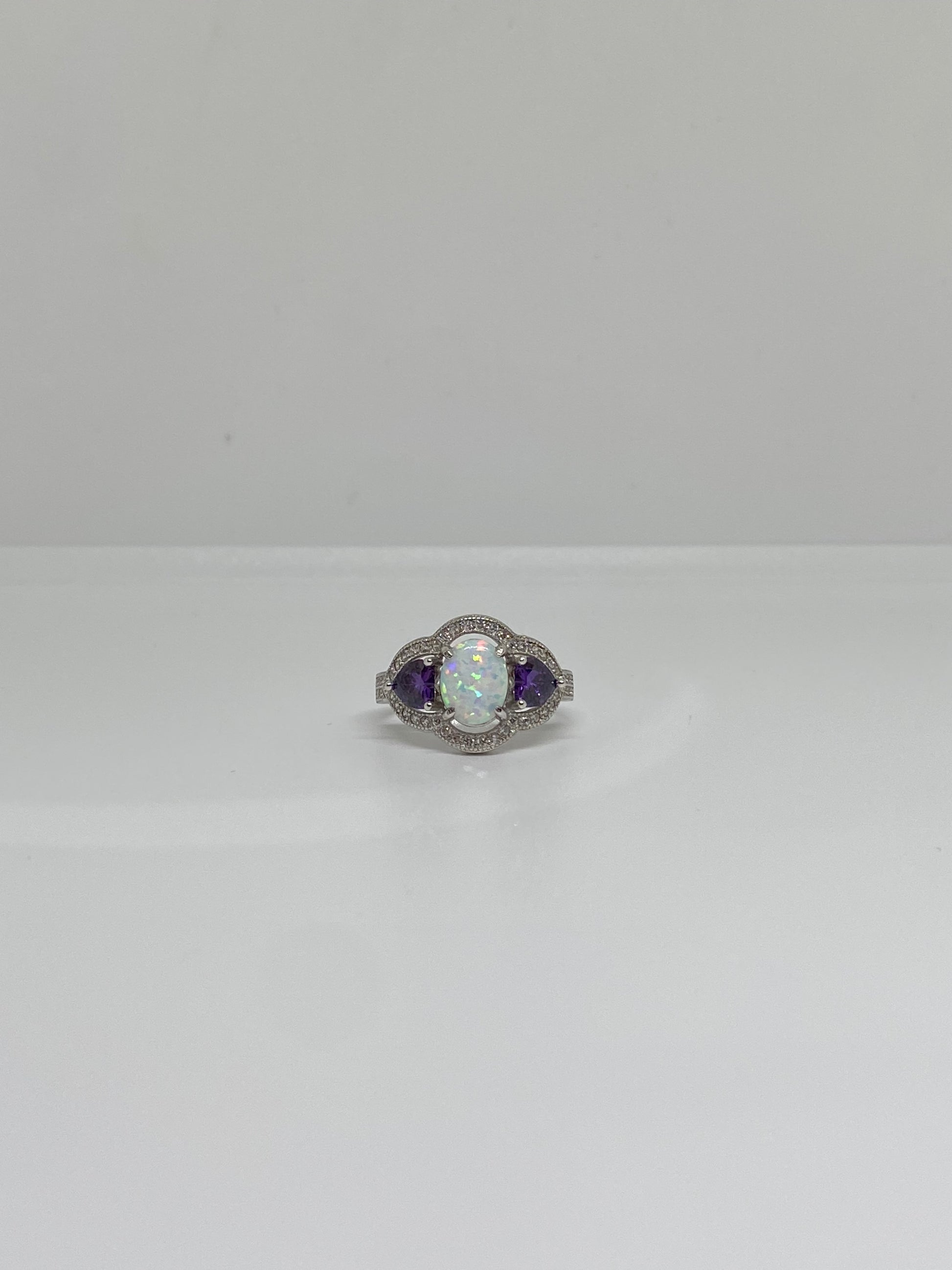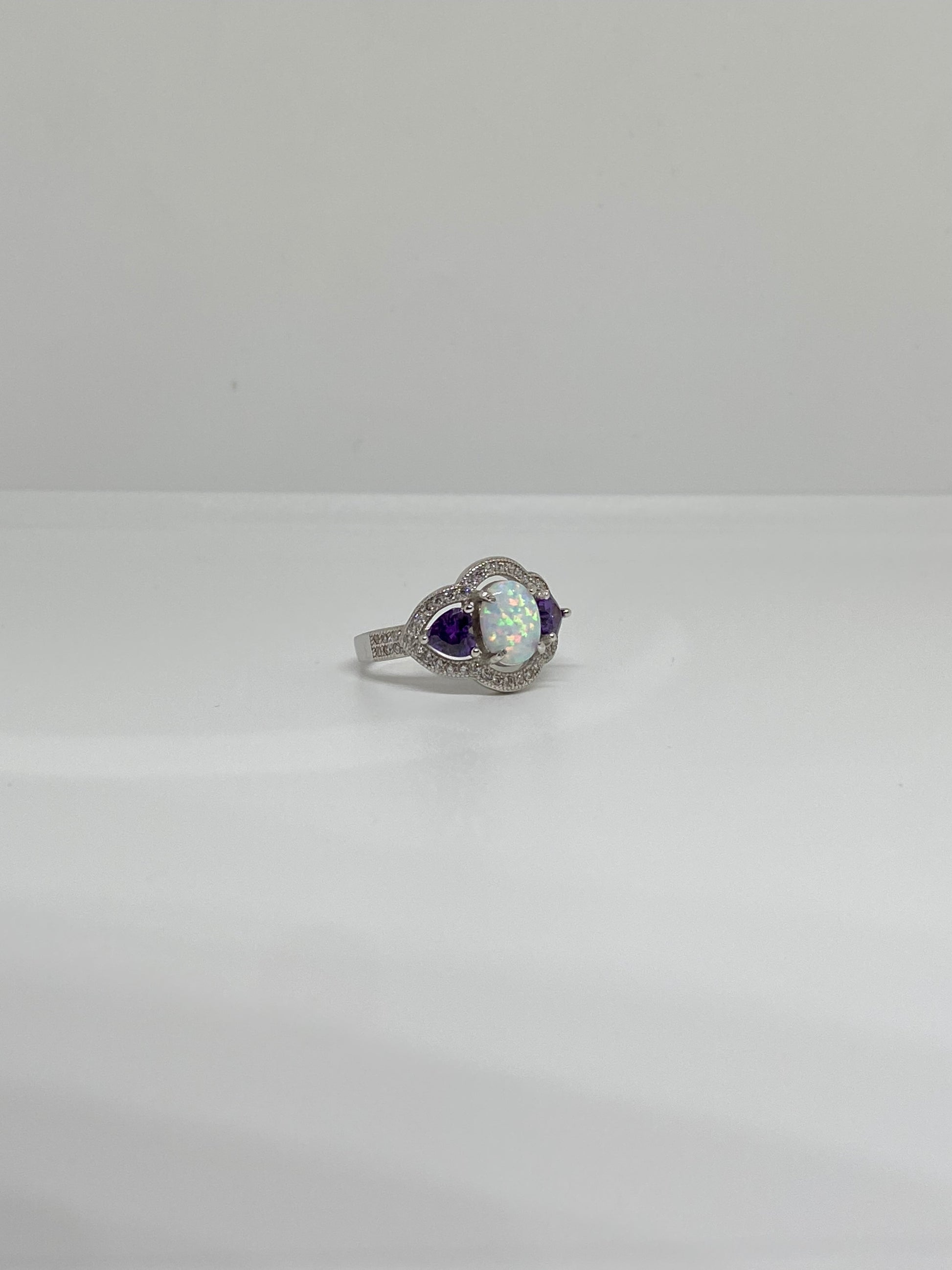 Sterling Silver Ring With Cubic Zirconia, Natural Crystal and Opal Stones.