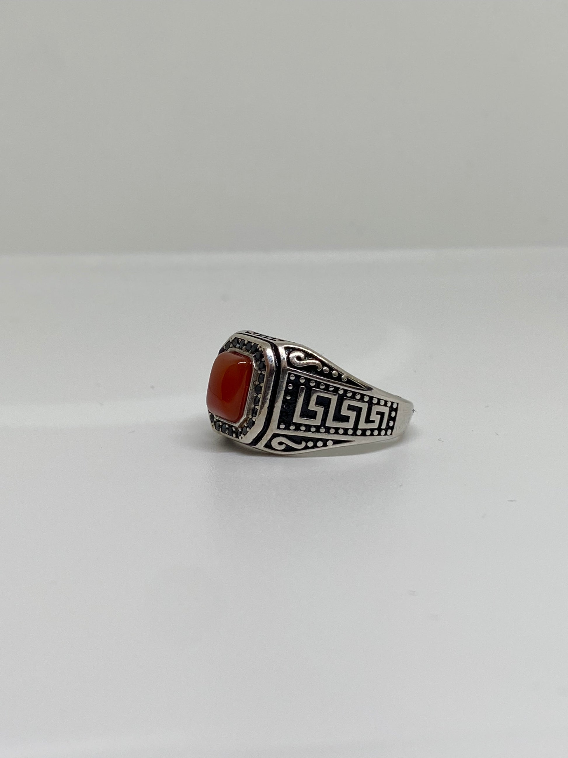 Sterling Silver Ring with Red Agate and Cubic Zirconia Stones.